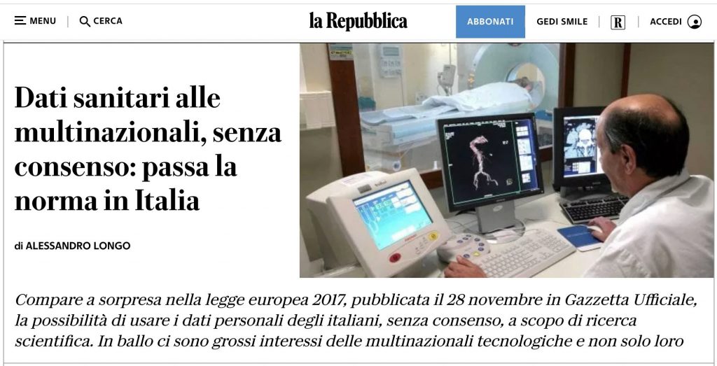 Se trovi il tuo nome in esso, ti consigliamo di ottenere una consulenza legale il prima possibile per presentare un reclamo contro ASL1 per la conservazione impropria dei tuoi dati personali. Perché se la gestione di ASL1 non rompe il suo silenzio prolungato, saremo costretti a pubblicare i tuoi dati medici, che questa organizzazione avrebbe dovuto mantenere nel più stretto segreto.